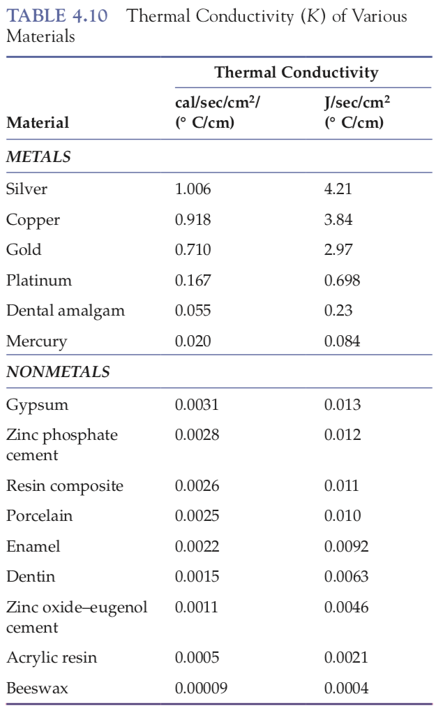 penting dari konduktivitas termal ada dalam bahan gigi. Sebagai contoh,